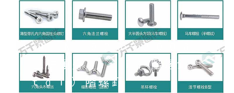 最常見(jiàn)的是六角頭螺栓 國(guó)標(biāo)GB5783GB5782 德標(biāo)Din933Din931(8.8級(jí)粗牙外六角螺栓)圓柱頭內(nèi)六角螺釘 國(guó)標(biāo)GB70.1德標(biāo)Din912 還有很多像什么盤(pán)頭十字螺釘 沉頭十字螺釘開(kāi)槽盤(pán)頭螺釘開(kāi)槽沉頭螺釘?shù)鹊群芏喾N。螺母的種類也很多 鍍層厚度保證在0.02~0.03mm范圍內(nèi),鍍層均勻,致密、無(wú)針孔等。相關(guān)國(guó)家標(biāo)準(zhǔn)如下 標(biāo)準(zhǔn)代號(hào) 名 稱 材 料 涂 復(fù) GB/T65-2000 開(kāi)槽圓柱頭螺釘 鋼、.不銹鋼 鍍鋅鈍化或不經(jīng)處理 GB/T67-2000 開(kāi)槽盤(pán)頭螺釘 鋼、.不銹鋼