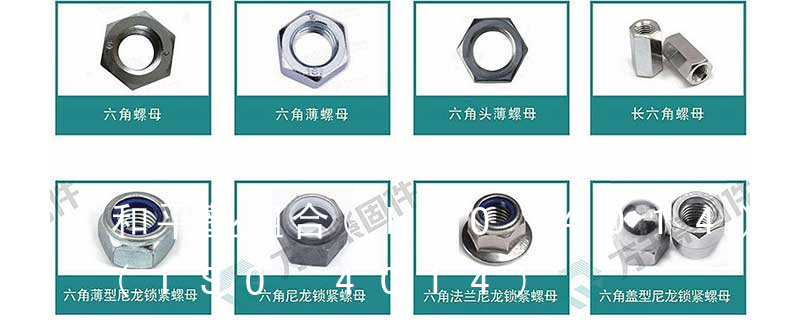 螺栓類:外六角螺栓、外六角法蘭面螺栓、內六角圓柱頭螺栓、吊環螺栓、膨脹螺栓、沉頭內六角螺栓、盤頭內六角螺絲、馬車螺栓、雙頭螺栓、蝶型螺絲、活節螺栓、地腳螺 栓、U型螺栓、四角螺栓等 螺帽類:鉚螺母、吊環螺母、