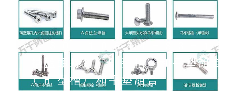 T型槽螺母 T-slot nuts 單頭螺柱 Single end studs 地腳螺栓 Masonry bolts 帶槽圓螺母 Slotted round nuts 端面帶孔圓螺母 Round nuts with drilled holes in one face 開槽平端緊定螺釘 Slotted set screws with flat