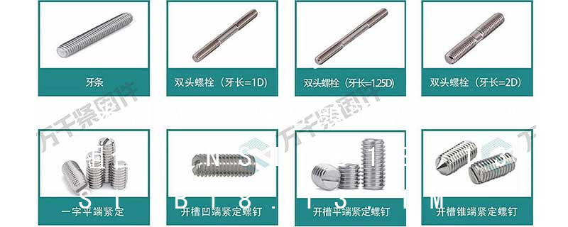 名稱: 1.機螺釘 2.自攻螺釘 3.鉆尾螺釘 4.墻板釘 5.纖維板釘 6.木螺釘7.六角木螺釘 8.不脫出螺釘 9.組合螺釘 10.微型螺釘 11.家具螺釘 12.電子螺釘 頭型: 1.六角頭(hexagon head) 2.六角頭法蘭面(hexagon head with flange) 3.方頭(square head) 4.T形頭T head (hammer head)5.扁圓頭mushroom